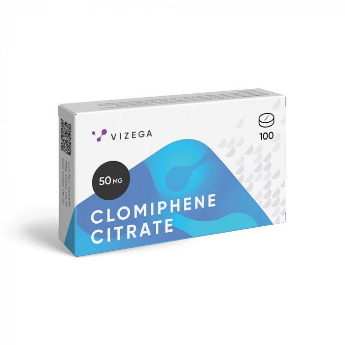 Clomiphene citrate 50 mg Tablets. There are 25 tablets in a blister. 4 blisters are packed in a cardboard box together with an enclosed leaflet.